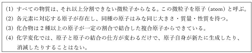 以上の4つのルールが原子説とよばれるものです。