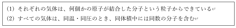 以上の2つのルールが分子説とよばれるものです。